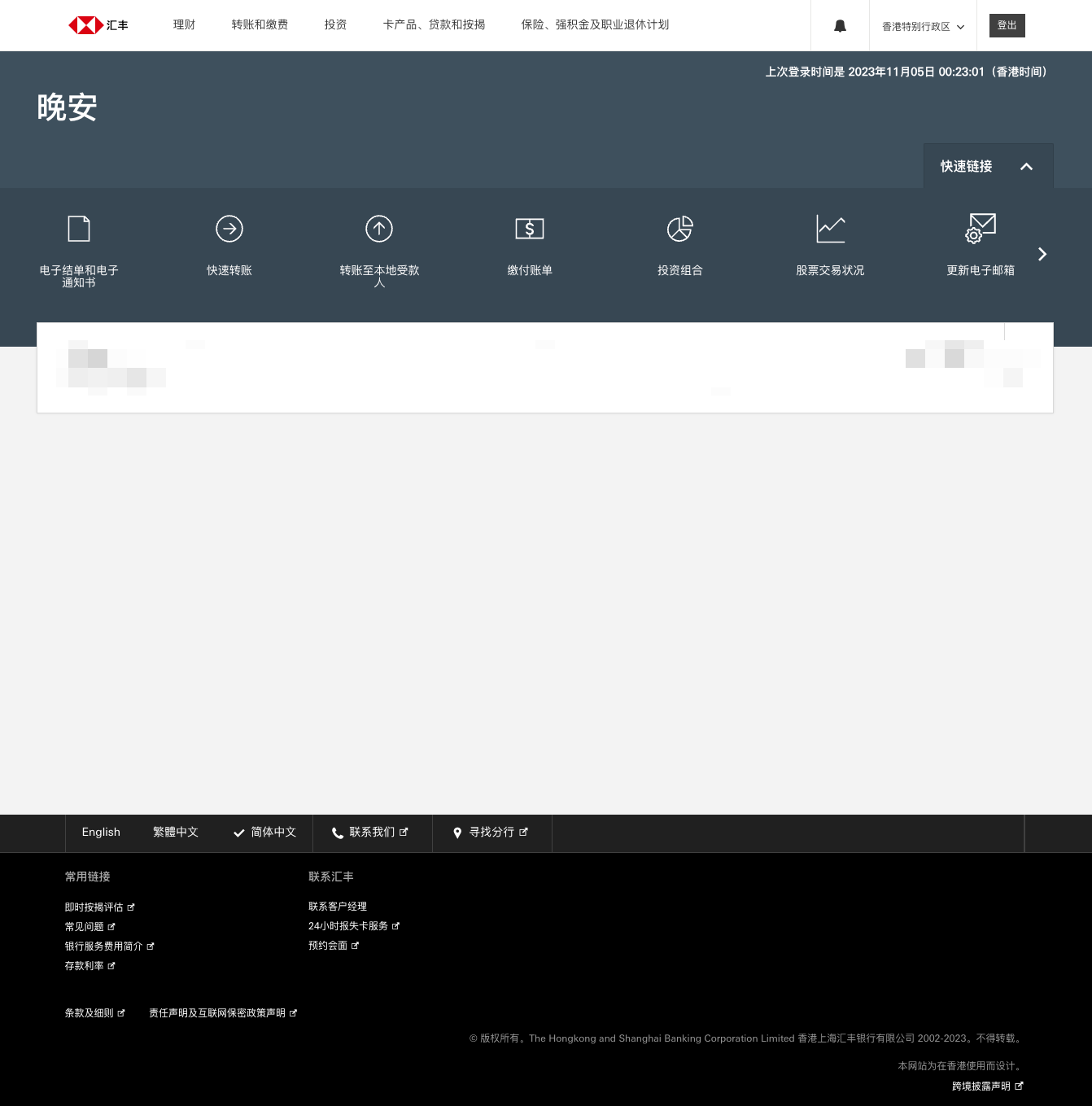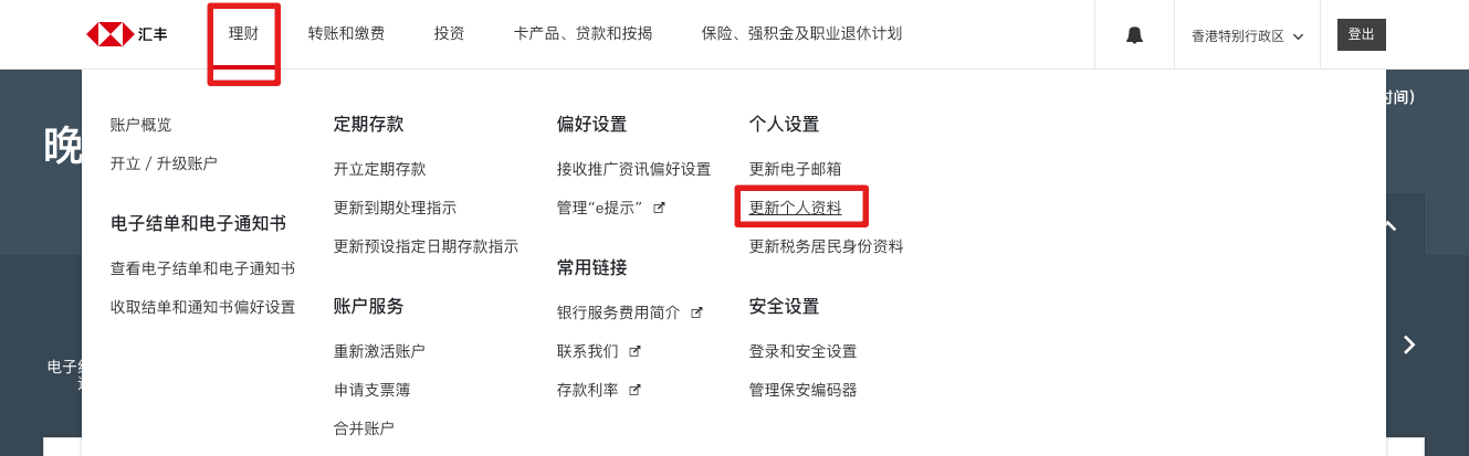 第一步:登录到 HSBC HK 的官网的个人账户中