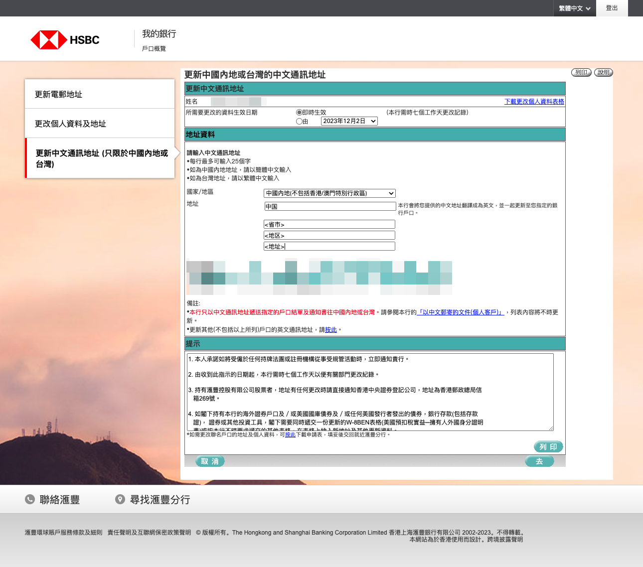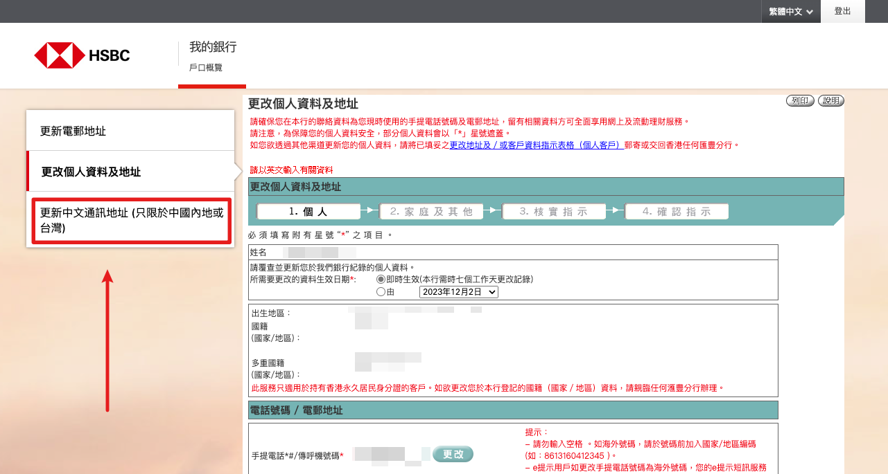 这篇文档记录一下在 2023 年的时候如何给 HSBC HK 的账户更新和配置中国内地的联络地址。